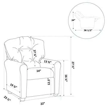 Parents will appreciate the ease of cleaning this recliner provides, as the faux leather material can be effortlessly wiped down, ensuring that it stays looking fresh and new even after spills or toddler messes. The solid engineered wood frame guarantees stability and safety, while the unique tufted design reduces any risks by eliminating small buttons that could pose a choking hazard. This makes the kids recliner not only appealing but also a safe choice for your child's room.