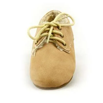 Show moreStep into style and comfort with The Doll Maker Shearling Oxford in a sophisticated tan hue. This beautifully crafted shoe features a premium suede PU upper, offering a luxurious feel while ensuring durability. The soft faux fur lining envelops your feet in warmth, making these shoes perfect for those colder days. With a design that combines elegance and functionality, these Oxfords are not only fashionable but also practical, perfectly balancing style and comfort. Each pair is handwashable, offering ease of maintenance without sacrificing quality.