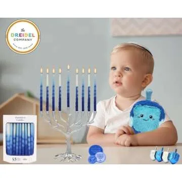 The Dreidel Company Dripless Deluxe Tapered Pastel Blue and White Hanukkah Menorah Candles for All 8 Nights of Chanuka (Single)