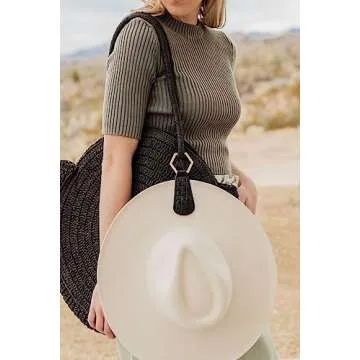 Introducing the Drop TOPTOTE Hat Clip in a chic Black finish, a revolutionary accessory designed specifically for hat enthusiasts who demand both style and functionality. This compact yet robust hat holder measures 5 1/4 inches long and features a 3/8-inch hex clasp opening, allowing you to easily attach it to most handbag straps. Exclusively crafted from premium leather, the TOPTOTE pairs elegance with durability, ensuring it stands the test of time. The high-powered magnet closure guarantees...