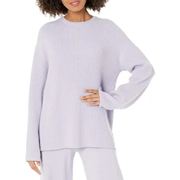 The Drop Women's Alice Crewneck Back Slit Ribbed Pullover Sweater, Dusty Purple, M