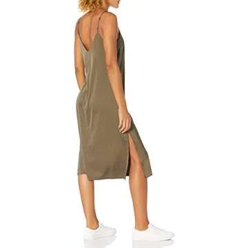 The Drop Women's Ana Silky V-Neck Midi Slip Dress, Dark Olive, M