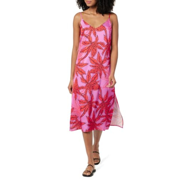 The Drop Women's Ana Silky V-Neck Midi Slip Dress Tropical Pink Floral Print, S