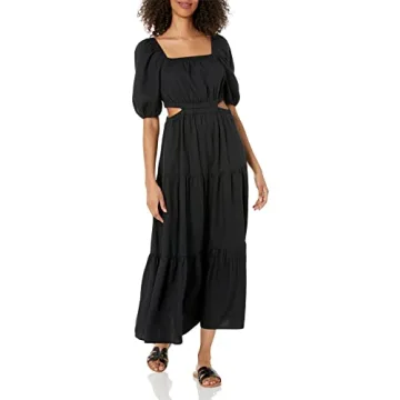 The Drop Women's Anaya Square Neck Cut-out Tiered Maxi Dress, Black, S
