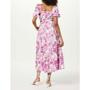 Introducing the Drop Women's Anaya Square Neck Cut-Out Tiered Maxi Dress, the ultimate embodiment of elegance and modern style for any occasion. Crafted from luxurious drapey Tencel, this dress offers not only a stunning wild purple floral print that captures the essence of nature's beauty, but also a chic silhouette highlighted by a square neckline and unique side cut-out details. Whether you're attending a summer garden party or enjoying a casual brunch, this versatile maxi dress...