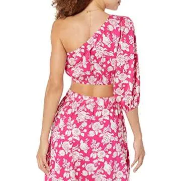 The Drop Women's Anupa Cotton One Shoulder Cropped Top, Hot Pink Floral, XS