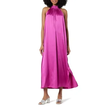 Introducing the captivating Drop Women's Arlette Silky Stretch Halter Maxi Dress in an exquisite Wild Purple. This dress is not just a piece of clothing; it's an experience that adds elegance and comfort to your wardrobe. Crafted with a premium silky stretch satin, this maxi dress gracefully drapes over your figure without clinging, ensuring you feel both comfortable and stylish no matter the occasion. The halter neck design enhances your shoulders and allows you to flaunt...