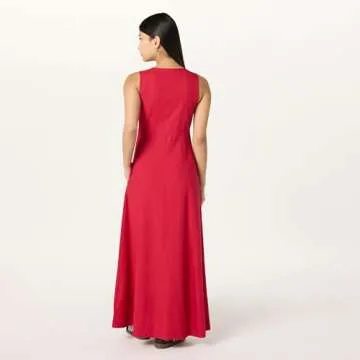 Show moreIntroducing the Staples by The Drop Women’s Blanca Linen Button Front V-Neck Maxi Dress, a perfect blend of elegance and comfort designed for the modern woman. Available in a vibrant Crimson, this dress is crafted from high-quality linen, ensuring breathability and style. Its flattering V-neckline and button front create a chic silhouette, while the long maxi design provides a sophisticated touch, making it a versatile addition to your wardrobe. Whether you're dressing up for a brunch or going casual for a family outing, this dress adapts to your every need, showcasing your personal style effortlessly. With its thoughtfully designed features, this dress is poised to become your go-to piece this season.