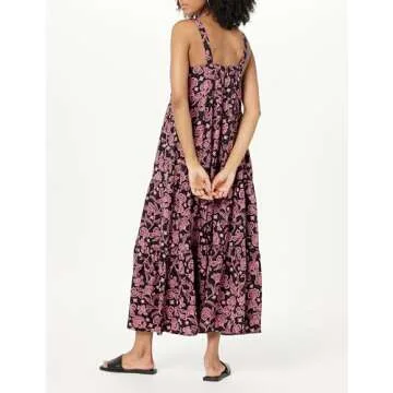 The Drop Women's Britt Tiered Maxi Tent Dress, Black/Pink Paisley Print, L
