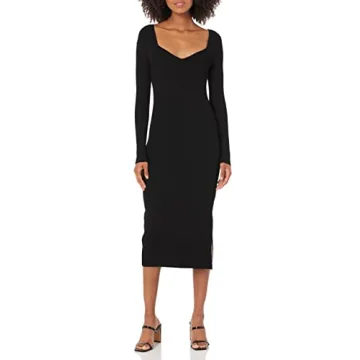 The Drop Women's Cameron Ribbed Sweetheart Neckline Midi Sweater Dress
