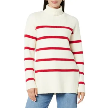 The Drop Women's Camilla Drop Shoulder Turtleneck Whisper White/Cherry Red, L