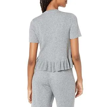 The Drop Women's Catalina Peplum Ruffle Rib Cardigan Sweater, Heather Grey, L