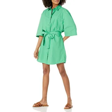 The Drop Women's Dakota Belted Mini Shirt Dress, Chic Jade