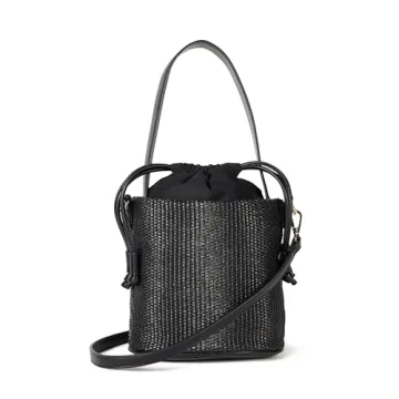 Chic Dallas Bucket Bag by The Drop - Versatile & Stylish Black/Black Straw