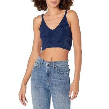 Introducing the The Drop Women's Divya Pointelle Bralette Sweater in a stunning Navy color, a perfect blend of style, comfort, and functionality for the modern woman. Fashioned with exquisite pointelle stitch detailing, this bralette is designed not just to be worn but to be experienced. With a snug fit that hugs your body in all the right places, this bralette is a fashion staple that enhances your wardrobe with its effortless elegance.