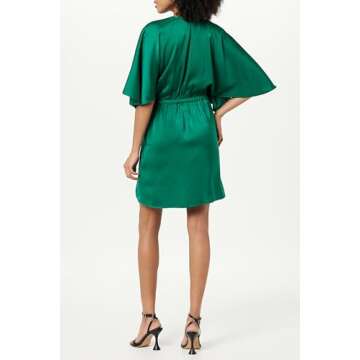 The Drop Estelle Deep V-Neck Front Tie Mini Dress - Chic Satin Design in Malachite Green