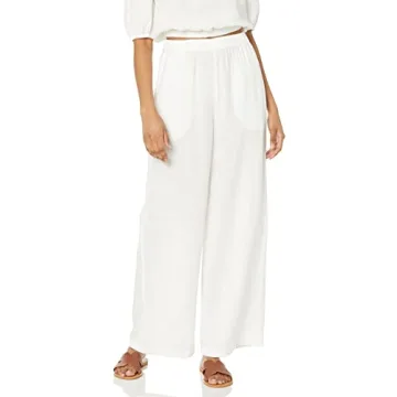 The Drop Women's Finley Relaxed Linen Pull-on Wide Leg Pant - Chic Comfort in White