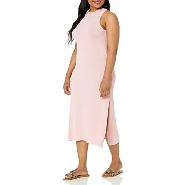 Elevate your wardrobe with The Drop Women's Gabriela Halter Neck A-Line Side Slit Maxi Dress in Ice Pink. This stunning piece is a staple for any fashion-forward individual, offering a perfect blend of style, comfort, and versatility. Crafted from a medium-weight luxe viscose nylon yarn blend, this dress is designed to follow the body, providing a regular-fit that is neither too loose nor too clingy. The midi length measures 47"/119 cm, making it an ideal choice for various body types. The body-skimming tank...