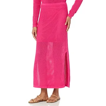 The Drop Women's Halle Crochet Midi Skirt with Side Slit, Hot Pink, S