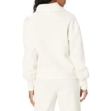 Show moreIntroducing the Hayley Half Zip Fleece Sweatshirt by The Drop—a must-have for any wardrobe! This women's sweatshirt is designed for unparalleled comfort and style, making it the perfect staple for casual days and cozy nights. Crafted from super-soft fleece, it features an exaggerated collar that enhances warmth and adds a touch of chic elegance. With its half-zip design, you can easily adjust the neckline for more breathability or warmth as needed. Available in a pristine Whisper White, this piece is not just versatile in terms of styling, but also extremely easy to maintain, holding up well after countless washes with no pilling or shrinkage, as echoed by our thrilled customers.