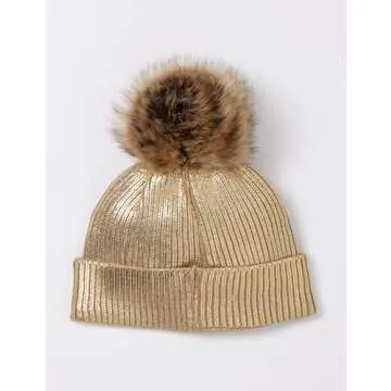 The Drop Women's Holly Faux Fur Pom Pom Beanie - Chic Gold Design