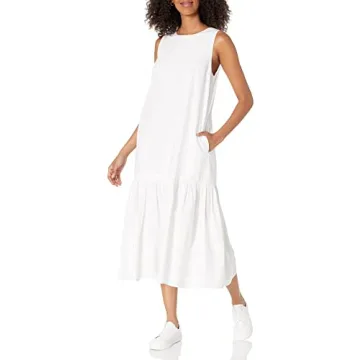 Show moreThe Drop Women's Ilana Loose Sleeveless Wide-Hem Poplin Maxi Dress in White is the perfect mix of elegance and comfort, fulfilling all your wardrobe needs. Crafted from lightweight cotton poplin, this dress guarantees a soft touch against your skin, making it ideal for those warm weather days. With its loose-fit design and flattering tiered silhouette, this dress effortlessly transitions from casual outings to more formal events. Measuring 49 inches long, it creates an enviable flow as you move, complemented by thoughtful features like a keyhole button closure at the back and convenient side slit pockets. Whether dressed up with accessories or worn casually, this maxi dress truly embodies versatility.