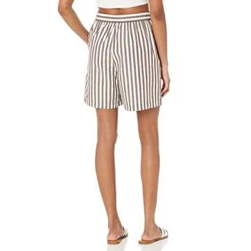 The Drop Women's Jada High Wiast Loose Fit Short, Coffee Bean Stripe, M