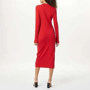 The Drop Women's Jaxon Button Down Ribbed Sweater Dress, Lava Red, S