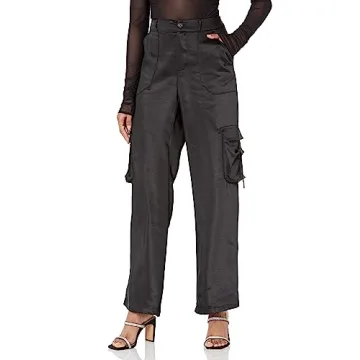 The Drop Women's Jessenia Shine Cargo Pants - Elegance Meets Comfort in Black