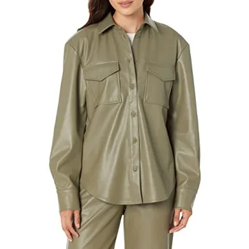 Show moreIntroducing the The Drop Women's @lisadnyc Faux Leather Long Shirt Jacket, a must-have addition to any fashion-forward wardrobe. This olive shirt jacket effortlessly balances style and comfort, making it your go-to piece for any occasion. Engineered with modern fashion in mind, this versatile faux leather jacket features a relaxed fit that allows ample room for movement. With its classic collar, patch pockets, and stylish dropped shoulders, it encapsulates a chic and laid-back aesthetic suitable for both casual outings and elevated events.