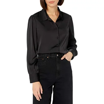 The Drop Women's Lucyswhims Stretch Satin Shirt - Elegant & Versatile Black Blouse