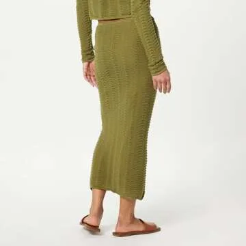 The Drop Women's Makayla Crochet Midi Skirt, Olive Oil, S