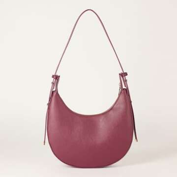 Show moreThe Drop Women's Marion Crescent Bag in Burgundy is your new go-to accessory that effortlessly elevates any outfit. Crafted with precision, this chic bag combines style and functionality, making it an essential addition to your wardrobe. With its versatile dimensions of 9.75”W x 7.5”H x 3.0”D and an adjustable strap that ranges from 6" to 23", you can easily customize the fit for maximum comfort and convenience. Whether you're dressing up for a night out or keeping it casual for your daytime activities, this bag perfectly complements every look.