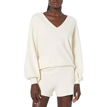 Show moreElevate your wardrobe with The Drop Women's Mia Bell Sleeve Deep V Neck Supersoft Sweater in Whisper White. This exquisite piece combines comfort with high-end fashion, featuring a cozy jersey fabric that's soft to the touch and not scratchy. Designed for a loose fit, it offers unparalleled comfort with drop shoulders and full cuff sleeves, making it a must-have for any fashion-forward individual. The deep V neck adds a touch of elegance, while the bell sleeves provide a unique flair. Perfect for pairing with a variety of bottoms, from wide-legged tweed dress pants to skinny jeans, this sweater is versatile enough for any occasion.