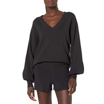 The Drop Women's Mia Bell Sleeve Deep V Neck Supersoft Sweater Black, S