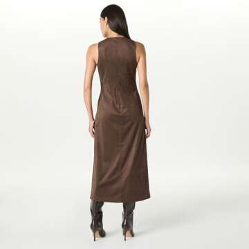Show moreIntroducing the The Drop Women's Mina Faux Suede Maxi Dress, a stunning fusion of sophistication and comfort designed for today's modern woman. Crafted from an ultra-soft faux suede, this dress is not only a luxurious addition to your wardrobe but also a versatile piece suitable for various occasions. With its elegant maxi length of 50" for size XS and 52" for size XXL, the Mina dress provides a flattering silhouette for all body types. The regular-fit design ensures that it gracefully follows your curves without feeling restrictive, allowing you to move with ease all day long.