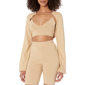 Stylish The Drop Women's Miya Bell Sleeve Sweater Shrug With Chain for Chilly Days