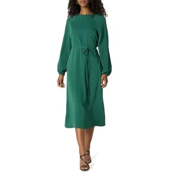 Show moreStep into elegance with The Drop Women’s Rain Forest Dolman Balloon Sleeve Belted Midi Dress. Crafted from lightweight, non-stretch polyester, this dress offers a perfect blend of comfort and style. The 47 1/2" length ensures a modest yet fashionable look, while the regular-fit design gracefully follows your body's contours, offering a silhouette that's neither too loose nor too clingy. The full sleeves with elasticated cuffs add a touch of sophistication, and the hidden back zipper ensures a seamless fit. The removable self-belted tie allows for customizable styling, making this dress a versatile addition to any wardrobe.