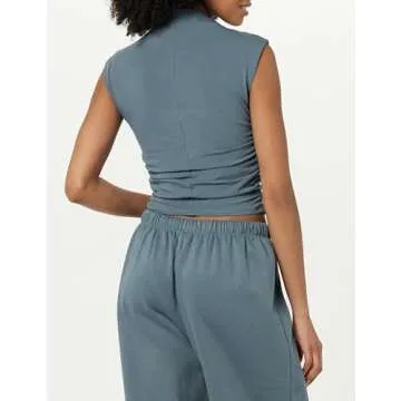 Discover effortless style and comfort with the Drop Women's Raylen Sleeveless Ruched Top, a must-have addition to your casual wardrobe. Crafted with a luxurious lightweight comfort stretch knit, this top is designed to elevate your basic outfits, making it easy to dress up for a chic night out or keep it casual for a day at home. The high neck and dropped armholes create a flattering silhouette while the ruching at the sides adds a fashionable touch, ensuring you look and feel your best in...