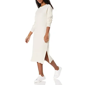 Show moreIntroducing the ultimate wardrobe staple - the Staples by The Drop Sweater Dress, expertly crafted to complement every woman's style. Made from a luxurious blend of acrylic and wool, this dress provides an impeccable balance of comfort and elegance, making it your go-to piece for multiple occasions. The Renata Rib Midi Dress, in a stunning Whisper White, showcases a classic crew neckline and an effortless straight silhouette, designed to flatter all body types. With carefully designed side slits for ease of movement, this sweater dress is perfect whether you're at home relaxing or out and about looking chic.