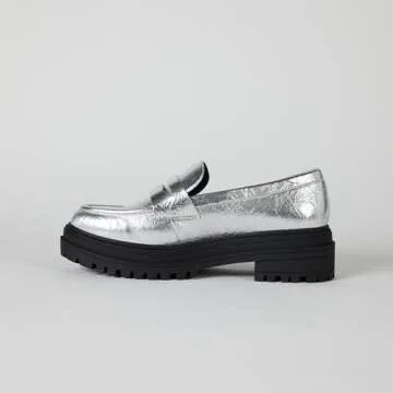 The Drop Women's Ryan Lug Sole Loafer, Silver Crinkle Metallic, 7.5