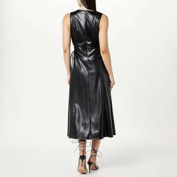 Show moreIntroducing the The Drop Women's Sabi Vegan Leather Cut-Out Midi Dress, a stunning addition to any wardrobe that combines elegance with an edgy twist. Made from high-quality faux leather, this dress is designed to hug your curves with a snug fit that accentuates your silhouette. The eye-catching cut-out detail adds a bold statement, making it perfect for both glamorous evenings and casual outings. Available in a versatile black color, it effortlessly transitions from day to night, ensuring you always look chic and stylish.