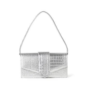 The Drop Women's Safiya Silver Flap Shoulder Bag - Elegant & Functional