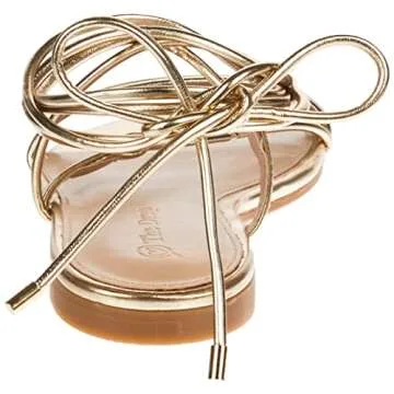 The Drop Women's Samantha Flat Strappy Lace-Up Sandal, Gold, 9