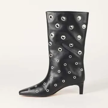 The Drop Women's Serena Midi Boot Black Grommets, 8