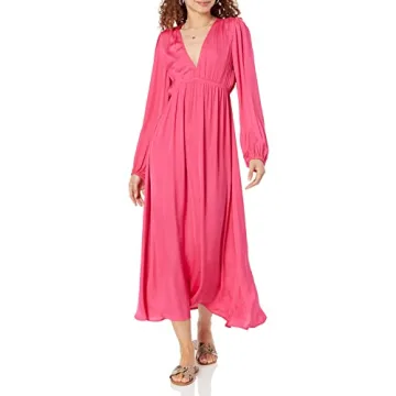The Drop Women's Shelly Deep V-Neck Long Sleeve Maxi Dress Hot Pink, L