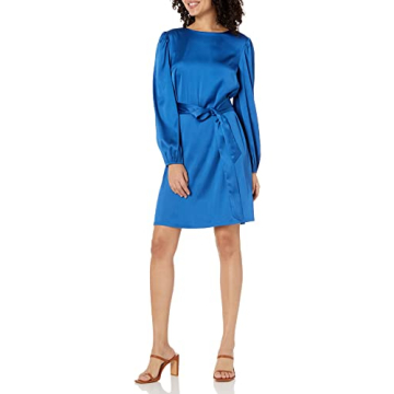 The Drop Women's @shopdandy Belted Silky Stretch Dress - Elegant Classic Blue