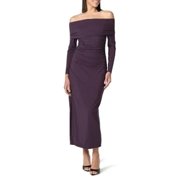 Show moreElevate your wardrobe with The Drop Women’s Stevie Off The Shoulder Maxi Knit Dress in Perfect Plum. This stunning dress is a staple for any fashion-forward individual, offering versatility and elegance in one. Crafted with high-quality knit material, it promises comfort without compromising on style. The off-the-shoulder design adds a touch of sophistication, making it perfect for both casual outings and more formal occasions. The ruching detail is expertly placed to flatter every figure, while the deep plum color ensures you stand out in any crowd. Whether you're dressing it up with heels for a night out or keeping it casual with sandals, this dress is designed to impress.