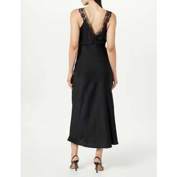 The Drop Women's Valentina Lace-Trimmed Slip Dress Black, M