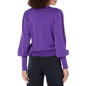 The Drop Women's Vivienne Padded Shoulder Crew-Neck Sweater, Dark Purple, M